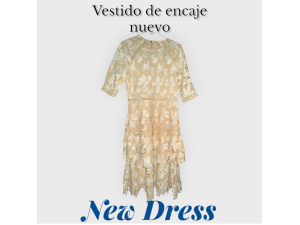 Vestido Nuevo de encaje, forrado, no usado, marca Just Me en color crema