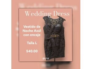 Vestido de noche Wedding Dress, azul oscuro, forrado, talla L, una sola vez usado, con detalle de piedras en el área del cinturón, la parte de atrás se amarra, en la última foto se ve una pequeña abertura.