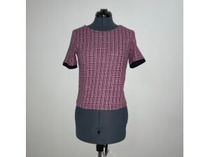 Blusa elegante, marca ZARA. Con mangas cortas y cuello redondo. Tela tweed sintético.