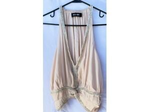 Blusa de embarazo, es talla s, es muy fresca, la tela es como si fuera de jeans pero es delgada y suave. tiene un pequeño detalle que se muestra en la foto pero no se ve por el cuello.