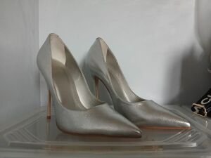 Zapatos negros de charol estilo mocasines poco uso. Talla 6 son hechos en Brasil. Marca Jorge Bischoff.